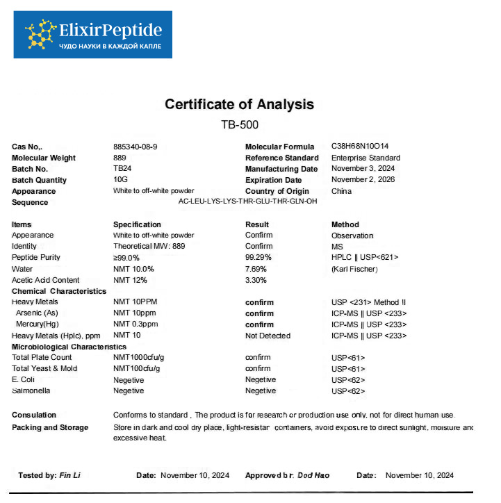 TB-500, состоит из восьми аминокислот, представляет собой синтетическую версию естественного пептида, выделенного из тимуса. Он состоит из 43 аминокислот и обладает широким спектром биологических действий, направленных на регенерацию тканей, уменьшение воспаления и ускорение заживления ран.